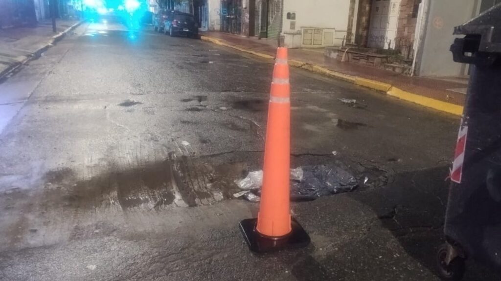El pozo que se ve es de unos 3 metros de largo por 1 de ancho, pero ante el temor de que el peso de los vehículos pudiera provocar un mayor hundimiento, se decidió cortar el tránsito en toda la cuadra.