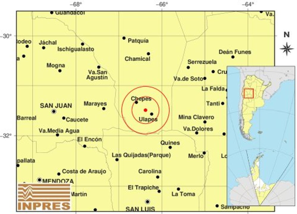 Según detalla el Instituto Nacional de Prevención Sísmica (INPRES) el fenómeno se registró a las 5.42 de la mañana a 17 km al NO de Ulapes; 25 km al SE de Chepes; 89 km al O de Chancaní (Córdoba), con una profundidad de 146 km.