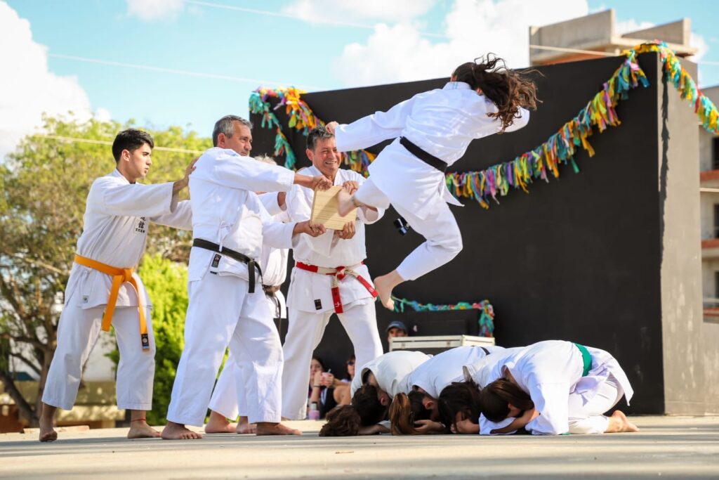 La jornada ofreció una amplia agenda de presentaciones y exhibiciones a cargo de instituciones y academias locales: Cheerleading del Club Almafuerte, Karate Miyazato Dojo, Taekwondo, Escuela Municipal de Kung Fu y Gimnasia Deportiva, Pole Sport, Hockey, Tenis, Deporte Adaptado, Automovilismo, New Com, Tejo y Teq Ball del Club Mitre.