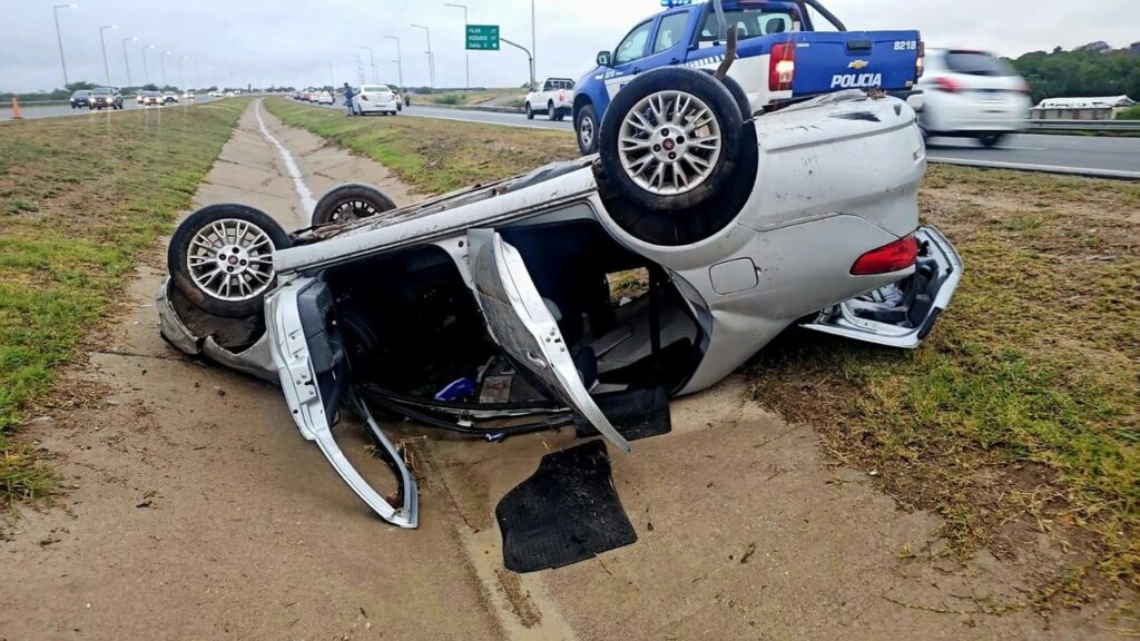En la madrugada de este jueves se produjo un accidente en Avenida de Circunvalación de Córdoba, a la altura del barrio Miralta, muy cerca del acceso a la autopista que conduce hacia Rosario, en el que un conductor de Uber y una familia de pasajeros resultaron involucrados. El vehículo circulaba durante la intensa tormenta, perdió el control y terminó en el cantero central, que funciona como desagüe pluvial.