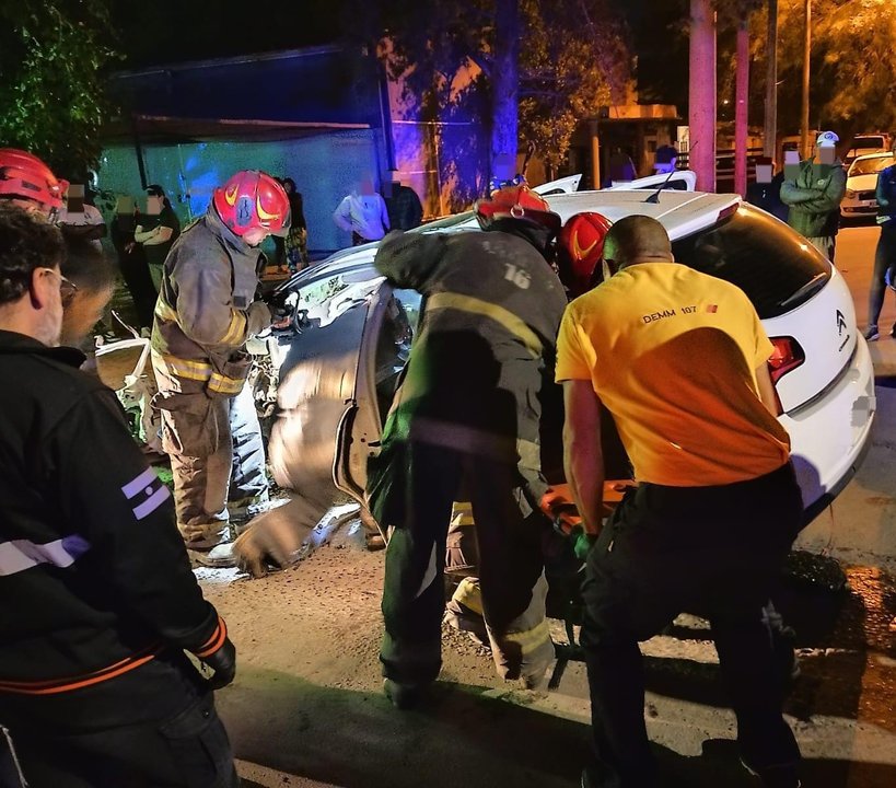 El operativo se desarrolló en avenida Bodereau al 8400, luego de que un vehículo protagonizara un choque que dejó a su conductor aprisionado entre los restos del rodado. Según el testimonio de un testigo, por causas que se investigan el Citroën C3 habría perdido el control y colisionado contra un poste de alumbrado público.