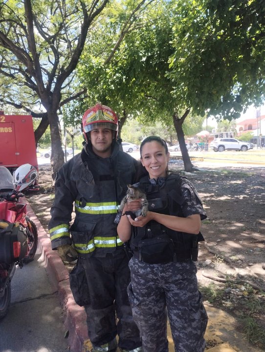 El felino quedó atrapado en el interior del desagüe, lo que motivó la intervención de los efectivos, quienes realizaron las maniobras necesarias para lograr su extracción de manera segura.