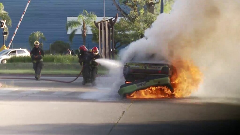 Algunos conductores que circulaban por la zona auxiliaron al conductor e intentaron sofocar las llamas con matafuegos.