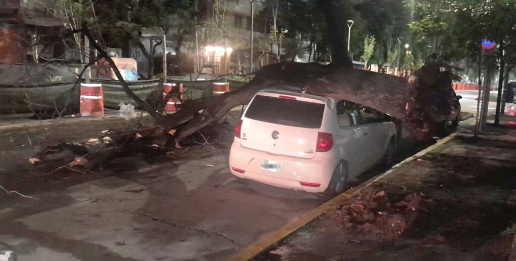 Según reporto la Policía de Córdoba, en Boulevard San Juan al 700 de Bº Güemes un árbol de gran porte cayó sobre un vehículo VW Fox que estaba estacionado en la vía pública.