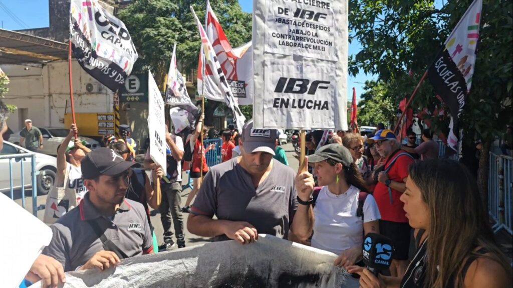 Un grupo de operarios de la fábrica de neumáticos IBF protestó en las puertas de la Secretaría de Trabajo provincial este martes, exigiendo una respuesta ante la incertidumbre laboral que afecta a 20 familias a horas de la Navidad.
