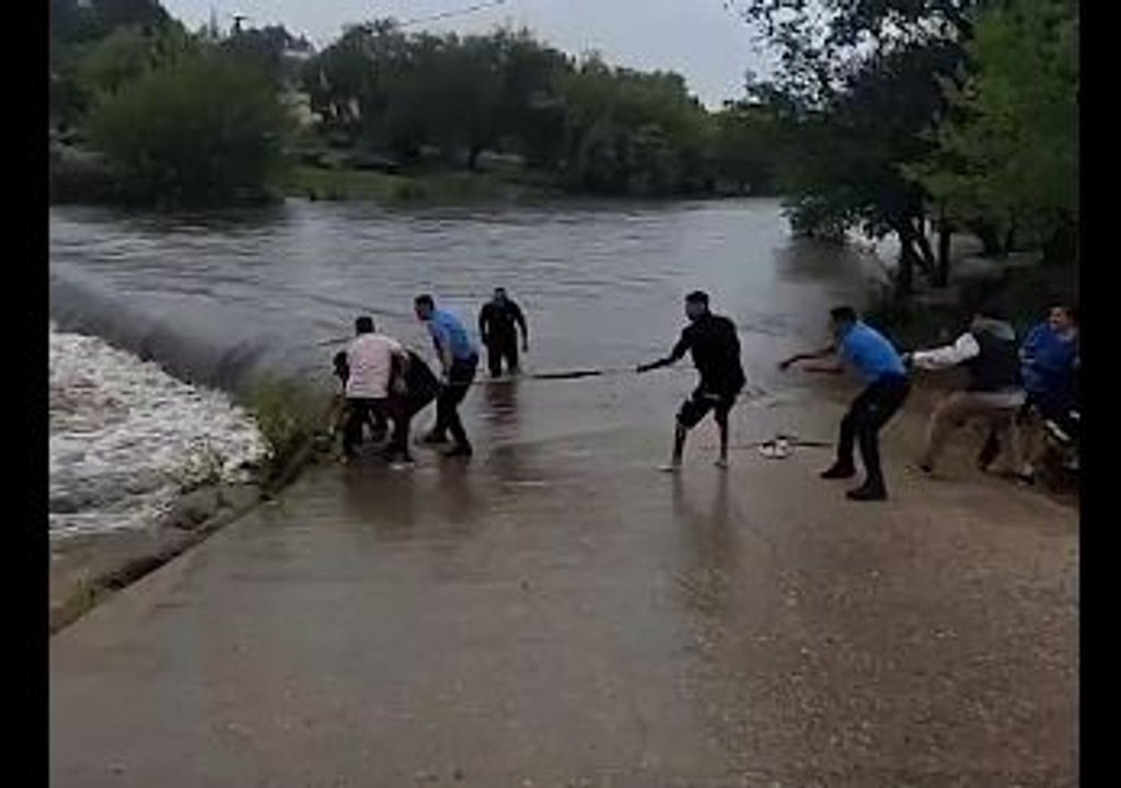 En Estancia Vieja, un hombre tuvo que ser rescatado luego de que intentara cruzar el río Los Chorrillos en motocicleta.