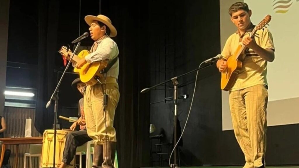 Tizziano y Alejo de Los Cedros interpretan su repertorio de folklore en las calles de Jesús María.