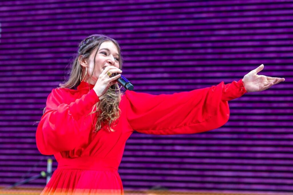 Una vez transcurrido el tiempo de la doma, llegó La Callejera, con su habitual fervor, a poner de pie a la concurrencia, invitando a la ola, que ya es un clásico del público.