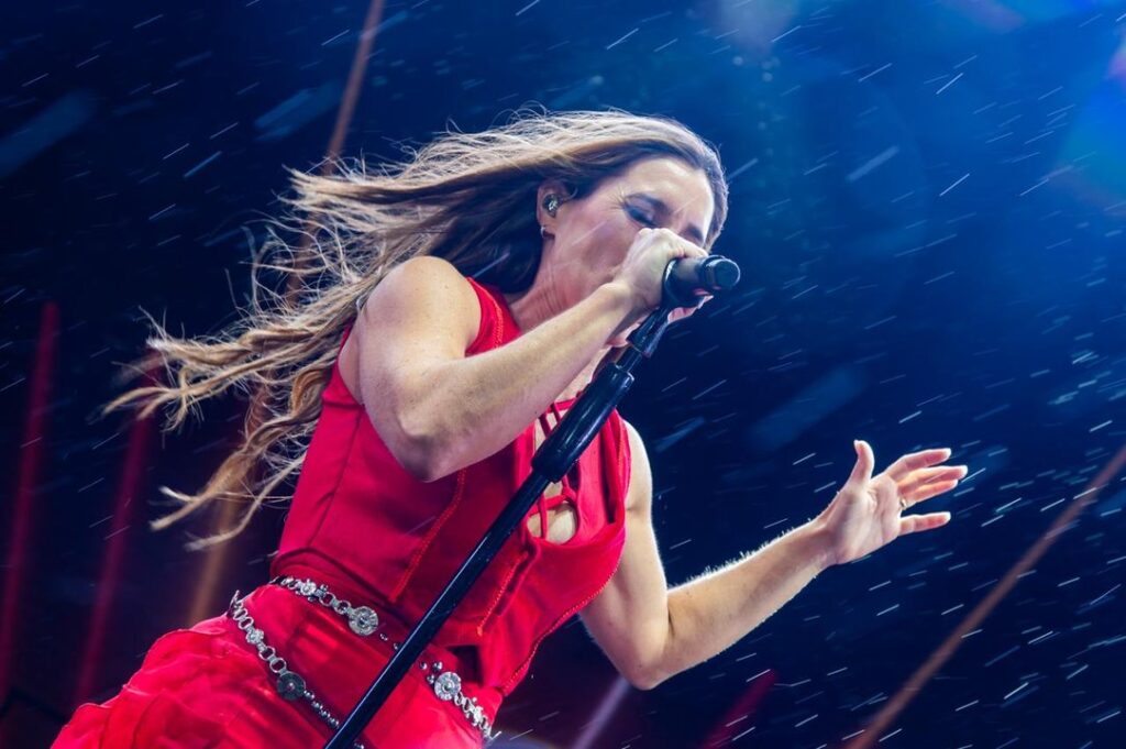 Invitó al dúo Amukan, conformado por Agustín Carletti y Mauricio Tarantola, de Laboulaye y Merlo. Durante la presentación se reanudó la lluvia con intensidad. “Mientras ustedes aguanten, yo me quedo. No me para nada”, aseguró Soledad a los presentes.