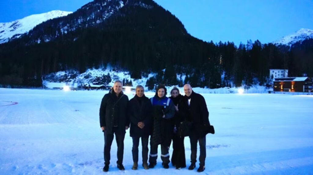 El presidente Javier Milei posó en la nieve de Davos, Suiza, con un mameluco de Yacimientos Petrolíferos Fiscales (YPF) en la antesala del discurso que dará este miércoles en el Foro Económico Mundial.
