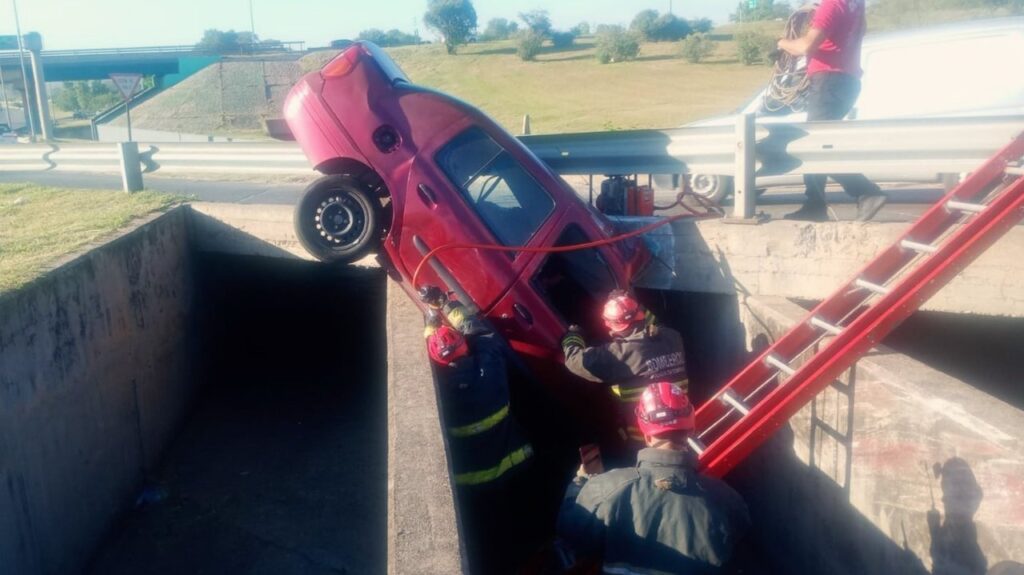 El hecho ocurrió a la altura del kilómetro 8 (cruce con Ruta 19), en el anillo interno, donde el conductor de un Renault Clio perdió el control y cayó al interior de un canal de desagüe.