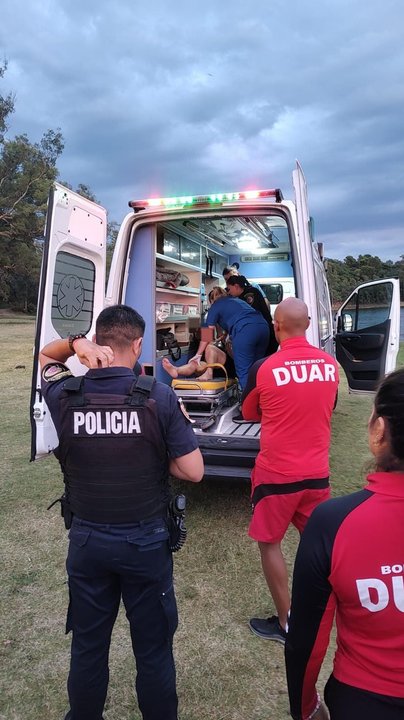 Los rescatistas que patrullaban el sector divisaron a una mujer adulta a una distancia considerable de la orilla —aproximadamente 70 metros—. Al observar que la persona estaba completamente vestida y que realizaba movimientos erráticos con evidentes dificultades para mantenerse a flote, el personal se lanzó al agua de inmediato.