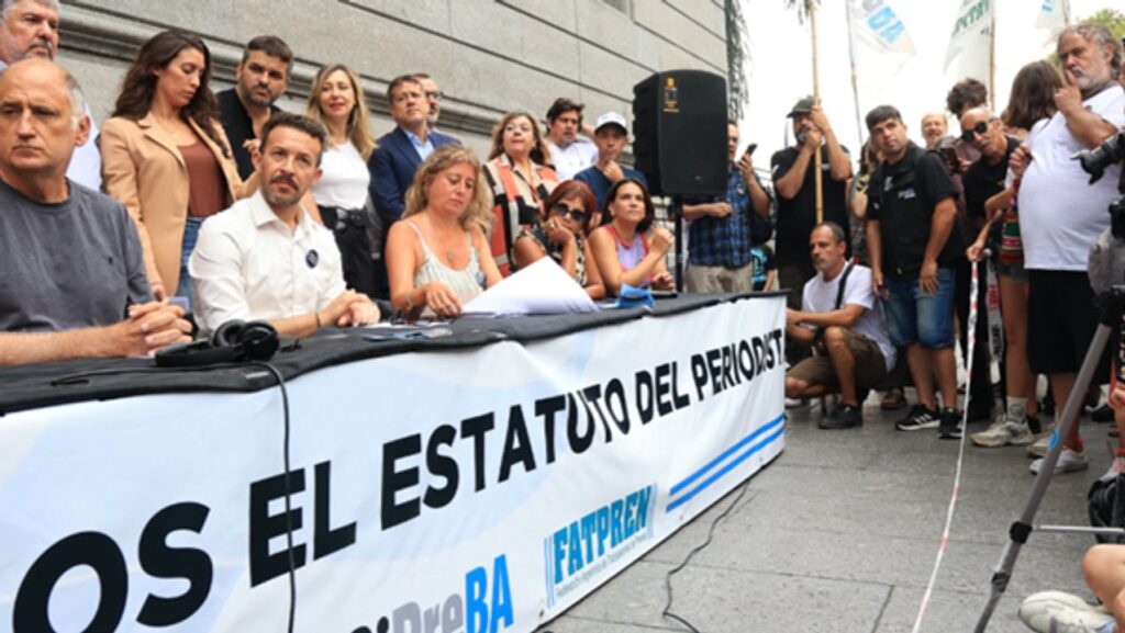 El Sindicato de Prensa de Buenos Aires (SiPreBA) y la Federación Argentina de Trabajadores de Prensa (FATPREN) organizaron la protesta y realizaron una conferencia de prensa para expresar el rechazo al artículo 193 que va en contra de la garantía de la libertad de expresión a la vez que avanza sobre derechos laborales.