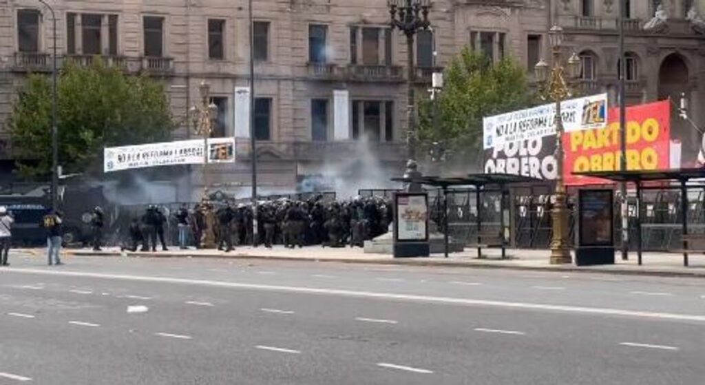 El Senado de la Nación debate el proyecto de Reforma Laboral y esto congregó un gran número de manifestantes en la calles de alrededor. Pasadas las 15, comenzó a haber incidentes entre los presentes y la Policía.