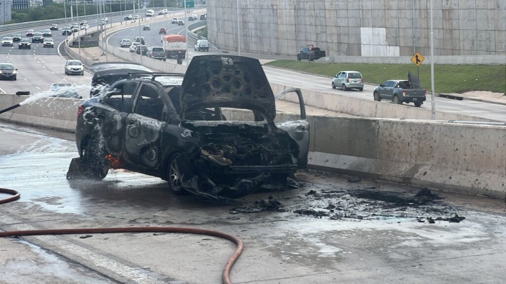 Un automóvil (Ford K) resultó incendiado en casi su totalidad en Av. Circunvalación km 40 (anillo interno, acceso a Mujer Urbana).
