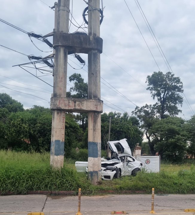 Un BMW, modelo 240i, conducido por un hombre mayor de edad, quien iba acompañado por otras cuatro personas, dos hombres y dos mujeres, una de ellas menor, chocó violentamente contra un poste de hormigón de alta tensión.