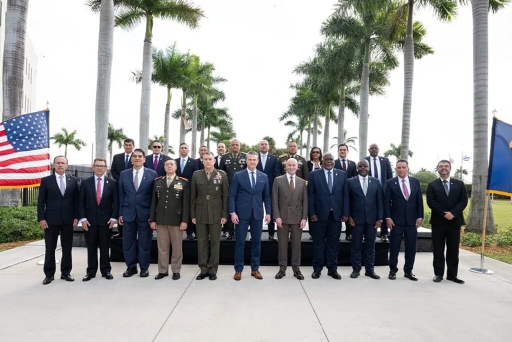 Hegseth lideró la conferencia en la sede del Comando Sur de Estados Unidos (Southcom) en Doral, en el sur de Florida, donde congregó a representantes de casi 20 países de Latinoamérica y el Caribe, como Bolivia, Chile, Costa Rica, Ecuador, El Salvador, Guatemala, Panamá, Paraguay, Perú, Honduras y República Dominicana.