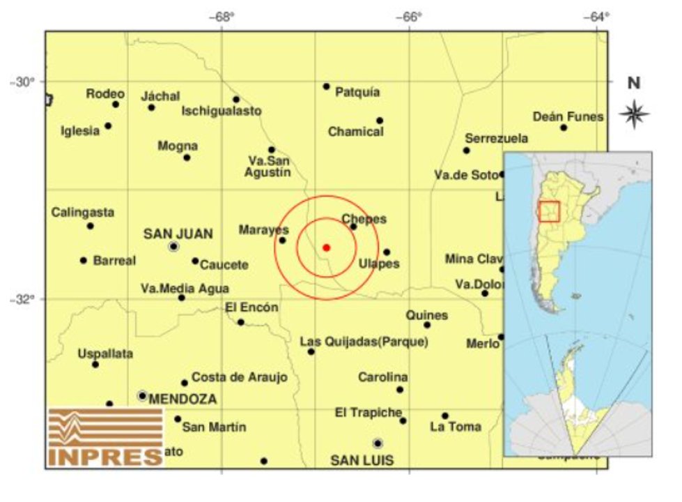 El Instituto Nacional de Prevención Sísmica (INPRES) detalló que el movimiento telúrico ocurrió cerca de la localidad riojana de Ulapes y a 35 kilómetros al suroeste de Chepes.