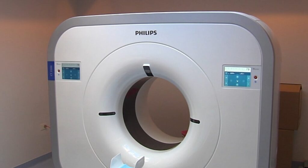 El tomógrafo cuenta con tecnología de Inteligencia Artificial que ajusta de forma automática la dosis de radiación. De esta manera, el sistema aplica los niveles mínimos indispensables para cuidar a la persona, sin perder un gramo de calidad en la imagen.
