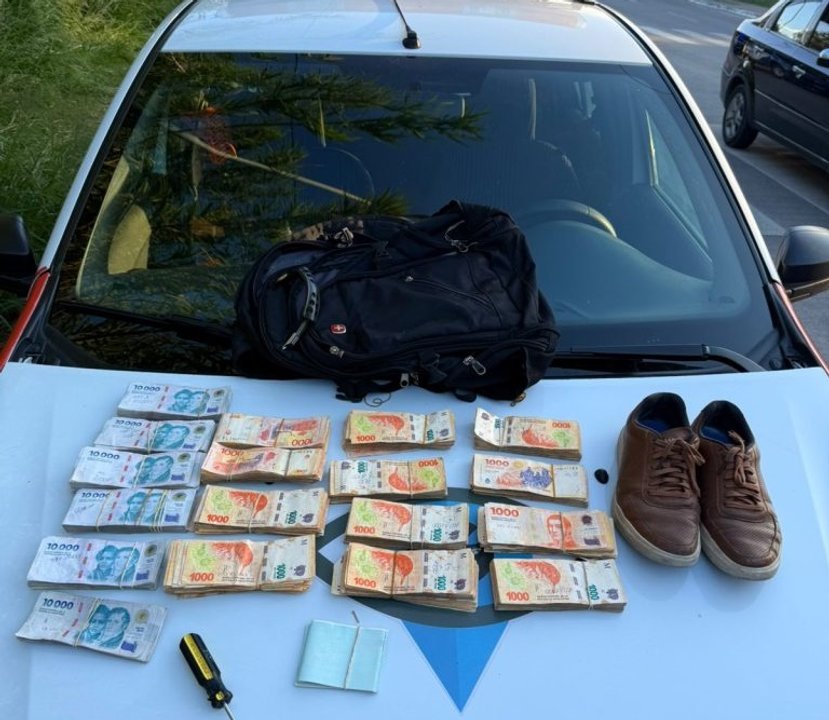 El detenido tenía en una mochila más de $6.000.000 en efectivo, cheques sin firmar por un monto superior a los 74 millones de pesos y un destornillador, además de otros elementos vinculados con el hecho.