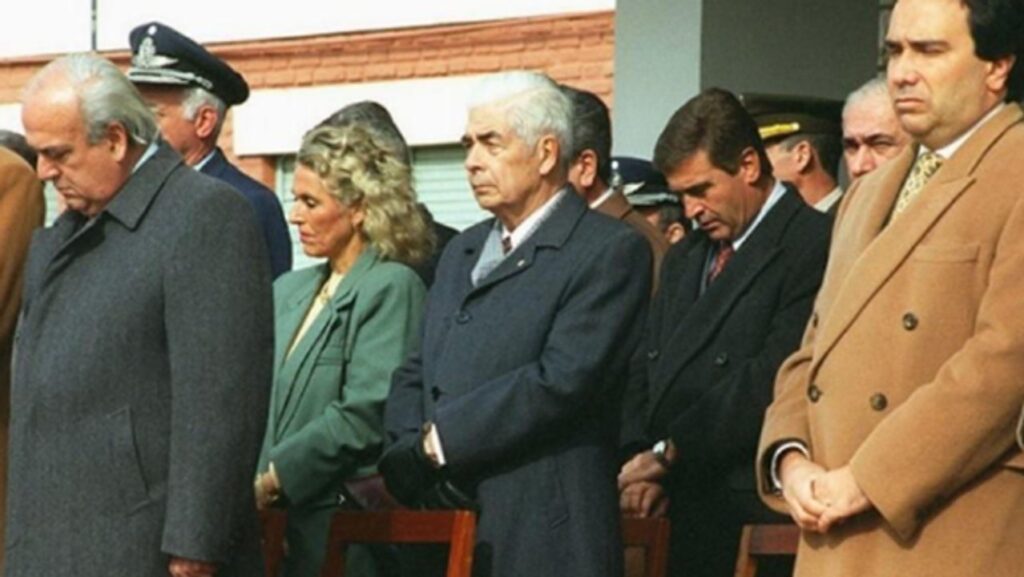 Era noviembre de 1997 cuando en el palco de un acto de la Policía Federal (en la avenida Hipólito Yrigoyen), estaban el gobernador Ramón Mestre, el vice Luis Molinari Romero, y el inefable ministro Oscar Aguad (quien protegió al represor Carlos Yanicelli y a la banda de asesinos del Departamento de Informaciones D2 de la Policía de Córdoba). También estaba la jueza federal Cristina Garzón de Lazcano, responsable luego junto a la fiscal Graciela López de Filoñuk de la investigación de múltiples causas de lesa humanidad que terminaron en juicios y condenas a perpetua a Menéndez y sus secuaces, y que en la foto está a su lado.